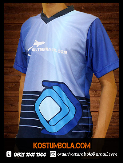 - Kaos Futsal Printing Trigana ini memakai kerah jenis V-neck